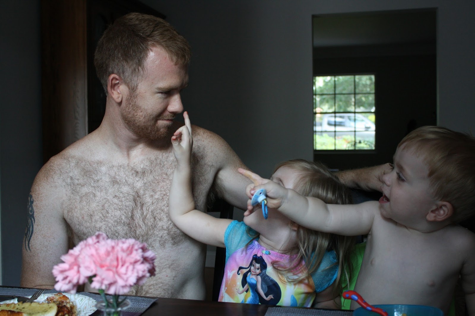 the best meals in our home result in degradation to ridiculous shenanigans. plus or minus toddler muscle flexing...